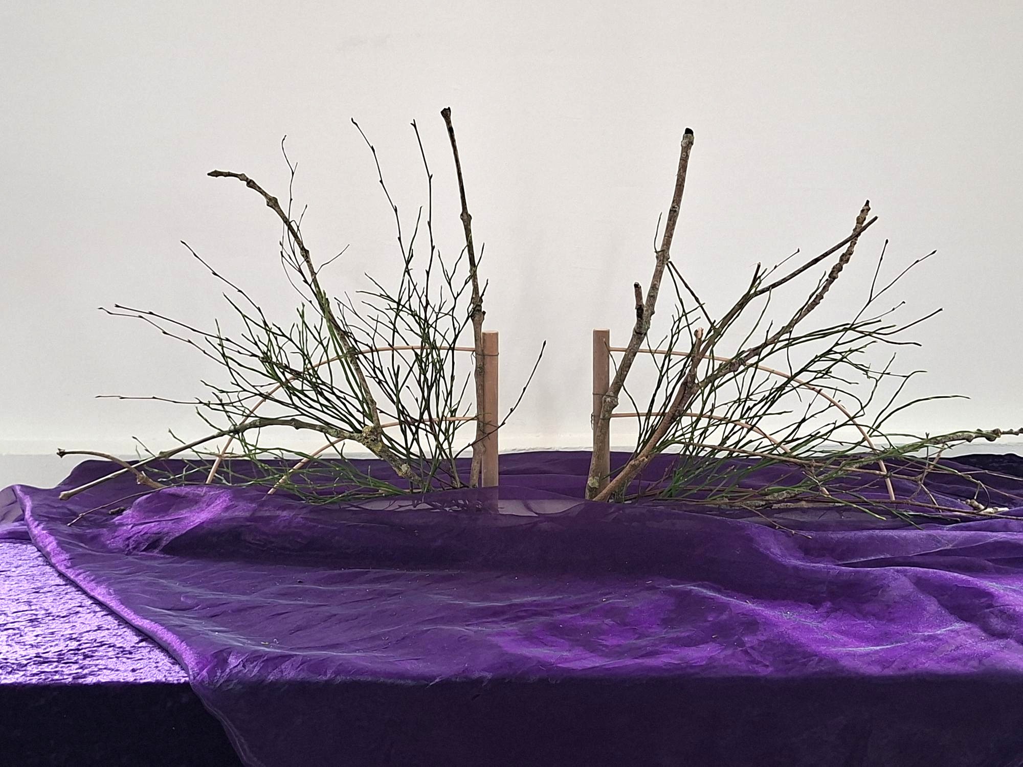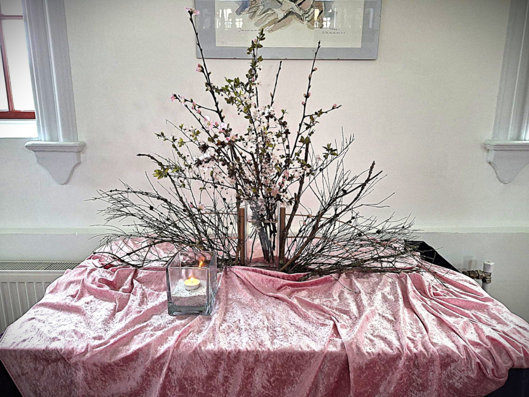 ![]() Uitleg basis liturgische schikking Veertigdagentijd 2026 De basis is een tweedimensionale waaier met in het midden van de waaier een vaas waarin elke keer andere bloemen, takken of andere materialen geplaatst worden. De waaier suggereert beweging die we misschien niet altijd ervaren. In sommige culturen (Japans) is de waaier bedoeld om te communiceren. In spirituele context heeft de waaier een symbolische betekenis. Zo wordt in de Chinese feng shui de waaier beschouwd als symbool van geluk en voorspoed. Deze drie symbolische bronnen samenvattend kun je zeggen dat voor ons de waaier staat voor beweging en communicatie op weg naar een andere toekomst, een nieuw begin. Zo gaan we in deze Veertigdagentijd samen op weg naar Pasen. De kinderen hebben hierbij het thema: De Weg van Hoop! In de “volwassendienst” zal het vanwege de verschillende voorgangers een wat onbekende weg zijn. | ||