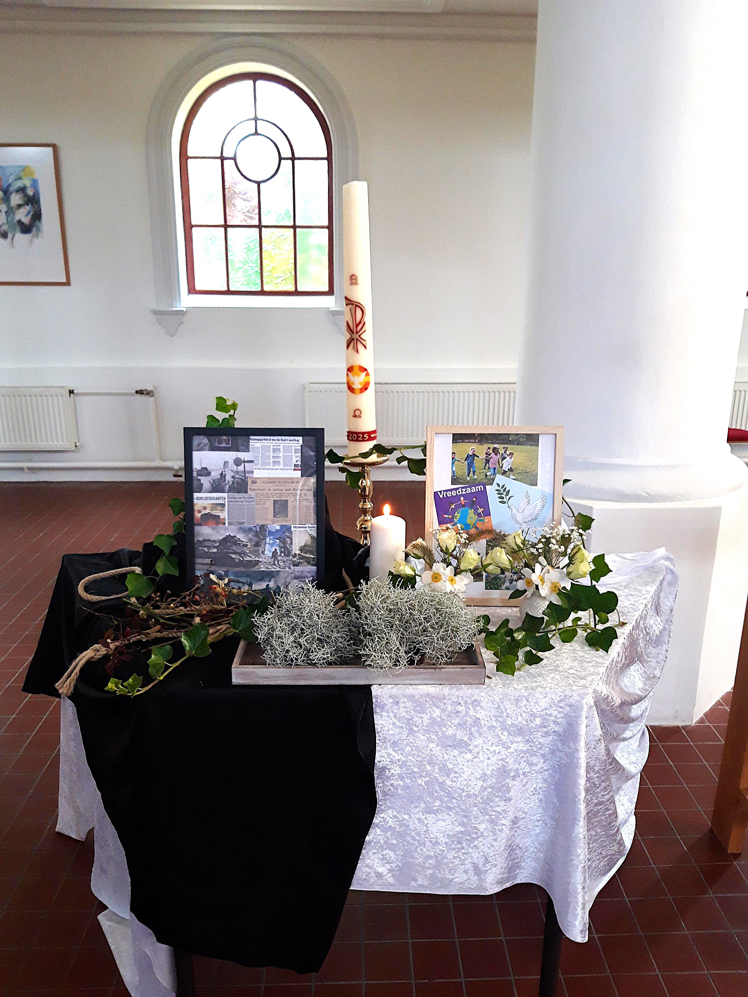 ![]() Uitleg liturgische schikking Stille Zaterdag, 19-04-2025 Wij zijn stil, Jezus is gestorven en naar een graf gebracht. Zijn moeder en vrienden rouwen om hem. Daarom is de hele schikking vanavond afgedekt met een zwarte doek, de kleur van rouw. Maar halverwege de avond lezen we in Lucas dat Jezus leeft. Daarom mogen we het doek weghalen en zien we de schikking in volle glorie: Jezus is opgestaan uit de dood. | ||